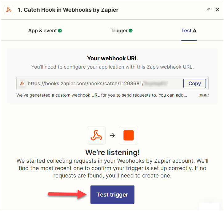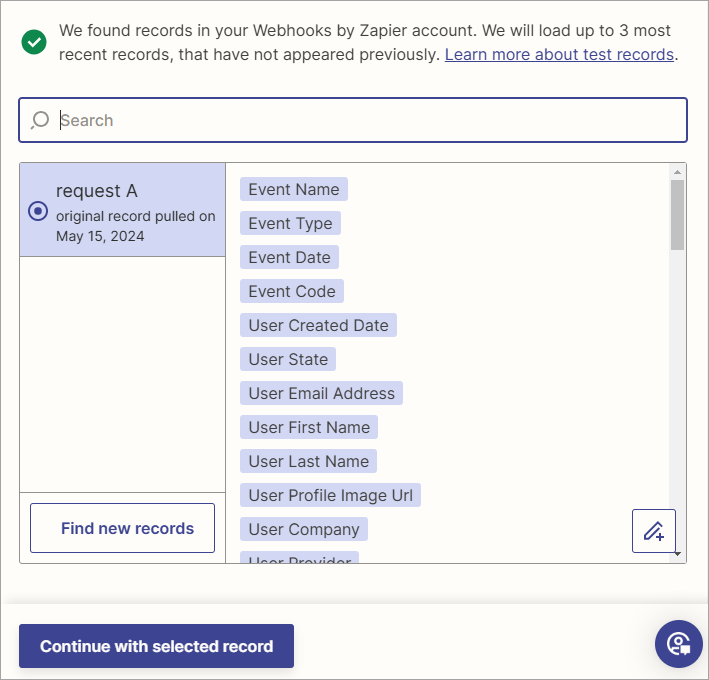 Return to Zapier and Select Trigger. You should see that a request was found, including the request details. If this is not the case, please repeat steps 5 and 6, and verify that you have entered the correct Webhook URL into the Bread & Butter.
