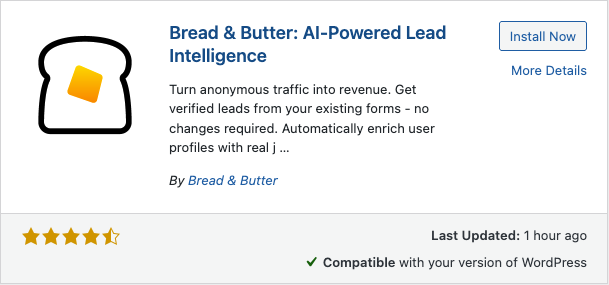 - Install: Locate the Bread & Butter plugin in the search results and click Install Now.