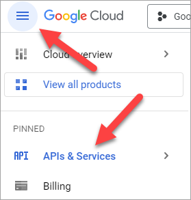 In the left menu, go to APIs & Services.