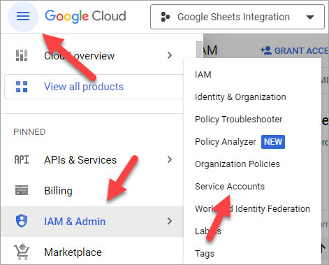 In the left menu, go to IAM & Admin > Service Accounts.