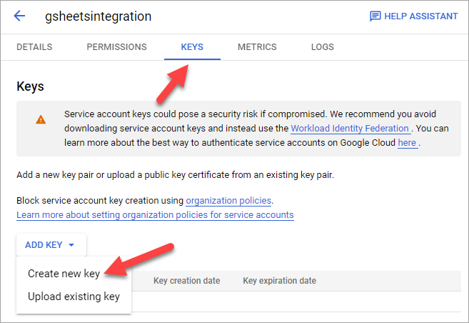 To connect Bread & Butter to Google Sheets, you need to create a project in Google Cloud, enable the Sheets API, and generate a Service Account key.