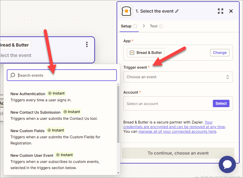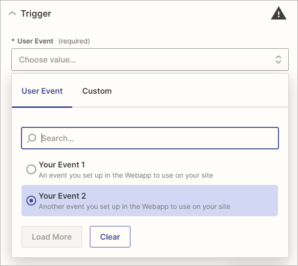 If you chose a System Event in Step 1.4, skip to the next step. If you selected a custom User Event, choose your specific User Event here. Then, click Continue.