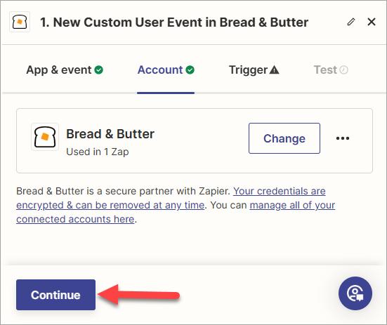 Your integration is now live! Bread & Butter will instantly push data to Zapier whenever the trigger event occurs.