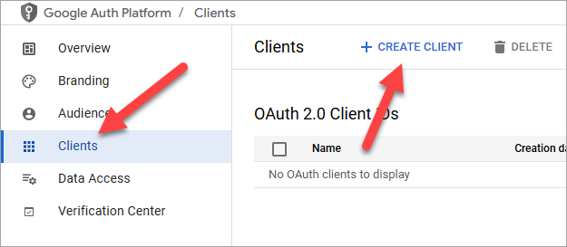 - In the left menu, select Clients, then click Create Client.