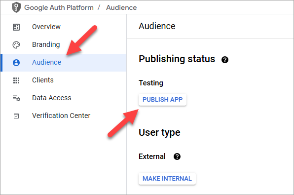 - In the left menu under APIs & Services, select Audience.