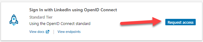 Find Sign In with LinkedIn using OpenID Connect and click Request access.