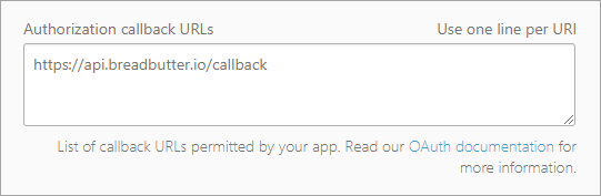 For the Authorization callback URLs, paste the following exact link: